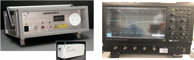 그림3. 충격파 파형 핵심 측정 장비 사진 : (좌) optical hydrophone, (우) digital oscilloscope